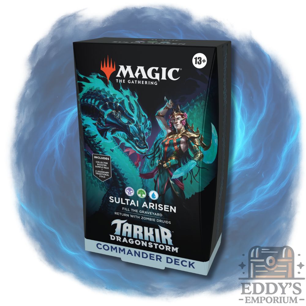 Master death and rebirth with the necromantic might of Sultai! Unleash the relentless power of the Sultai clan in Tarkir: Dragonstorm with the Sultai Arisen Commander Deck. Led by the spirit dragon Teval and the cunning Kotis, this deck thrives on graveyard synergies, death triggers, and eerie resurrection plays. Perfect for players who love control, recursion, and outlasting their foes through unyielding strategy.